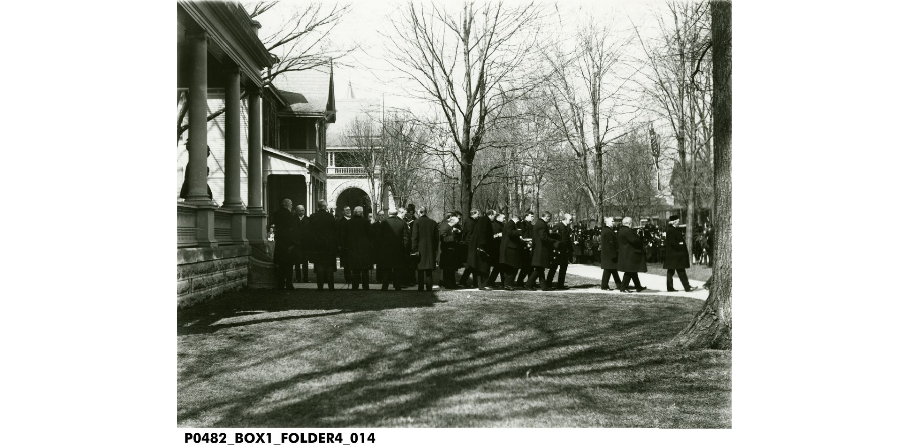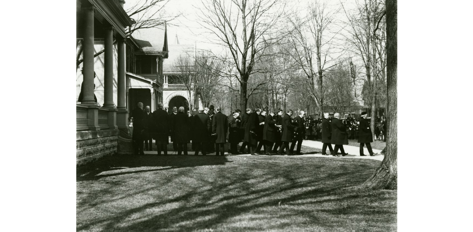 Along with the Harrison family and President McKinley, the funeral was attended by local officials and dignitaries, Illinois governor Richard Yates, Ohio governor George Nash, Michigan Lt. Gov. O. W. Robinson, poet James Whitcomb Riley, and members of Benjamin Harrison’s presidential cabinet. These former cabinet members, Charles W. Foster (Treasury Secretary), W. H. H. Miller (Attorney General), Stephan Elkins (Secretary of War), Benjamin Tracy (Secretary of the Navy), John W. Noble (Secretary of the Interior), and John Wanamaker (Postmaster General) served as honorary pallbearers for the funeral.